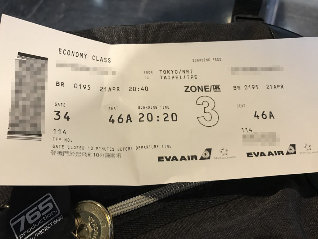 そしてエバー航空BR196便に搭乗、一路日本へと向かいました。
